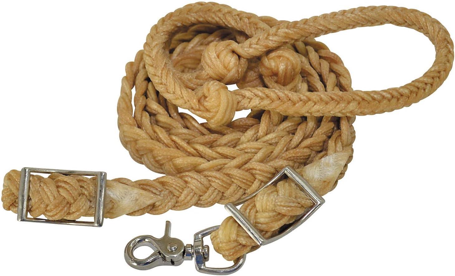 Poly Rope Gaming Reins Roping Reins Western Reins Natural Braided Rawhide Trim Brown 5/8" x 7'