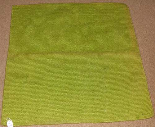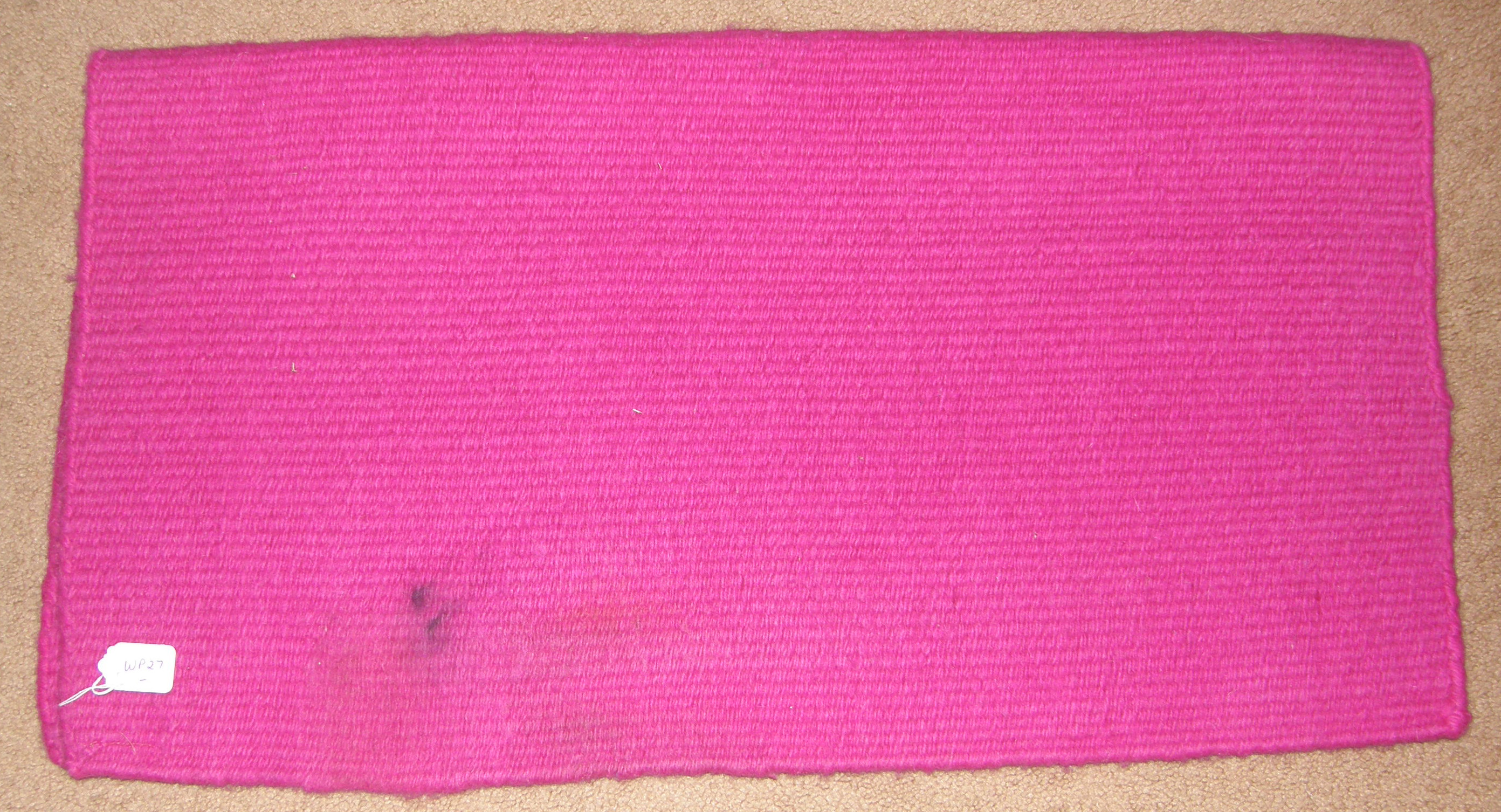 Single fold solid color western saddle blanket with rolled edges on 2 sides. Has very minor dirt/hair at edges on bottom. Smaller size great for pony or youth showers. Measures approx 28" x 26".