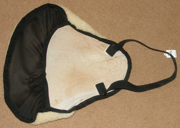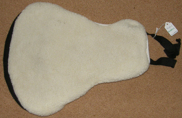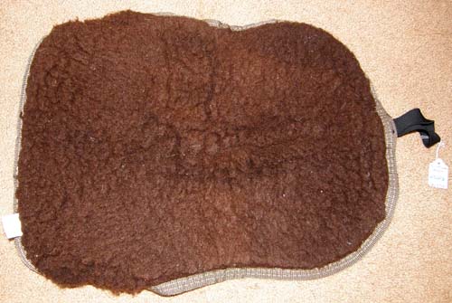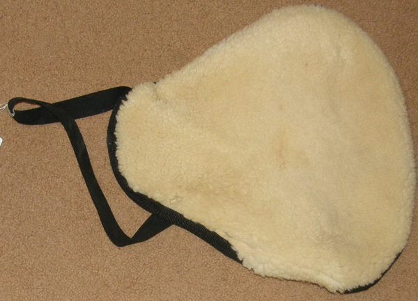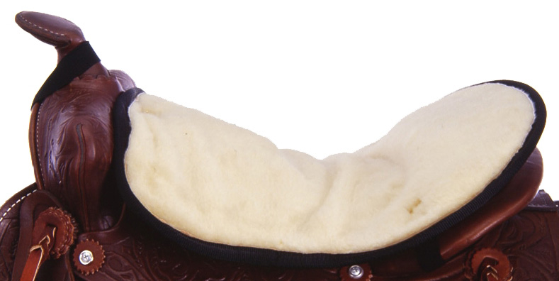 This 100% wool sheepskin seat saver has a nylon/velcro strap & 2 metal grommets for additional ties in front for attaching around saddle horn & cordura with elastic in back to hold it in place. Protects your saddle and provides a soft cushioned ride. Fits most Western & Western style Endurance or Australian Stock saddles with a pommel. A must have item for the serious trail rider. Soften the blow of those hard saddle seats, those with bad backs, sore buts or for those who spend long hours in the saddle. Approx 19 1/2” long x 15 1/2” at widest point.