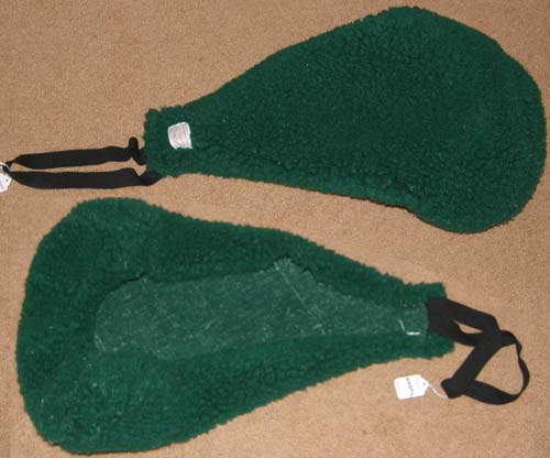 This classic seat saver has a nylon construction with soft fleece padding. Elastic straps to hold it in place. Protects your saddle and provides a soft cushioned ride. Fits most western saddles. Must have item for the serious trail rider. 5 available