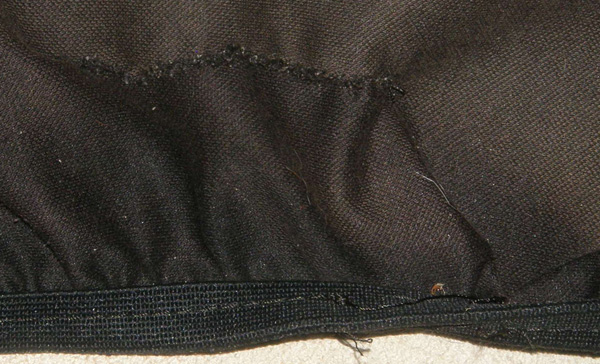 This classic seat cover will protect your seat during those long hours in the saddle. This is not padded, just a single layer of synthetic fleece & slips on & off easily with elastic loop front & pocket in back for slipping over the cantle. Machine washable. Will fit most western saddles. Clean but elastic starting to lose some stretch so may need to be tied in a knot to fit.