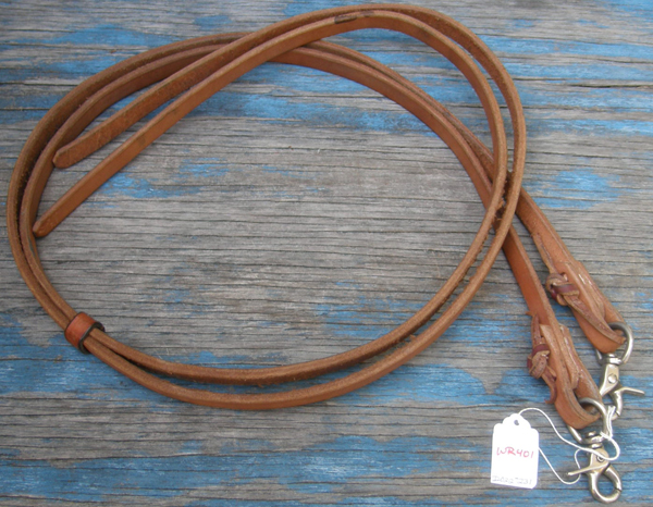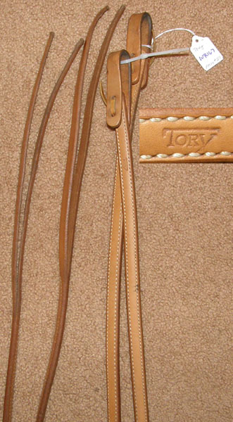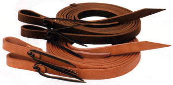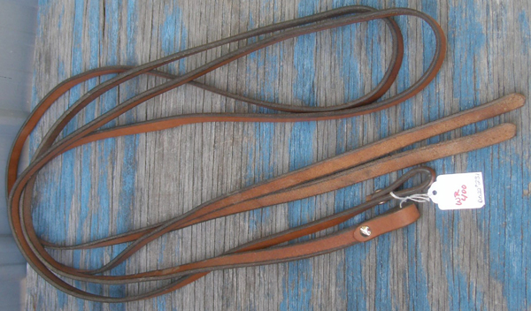 Light oil quality leather reins with water loop ends, 5/8” wide x 8' long. Soft, flexible, quality leather with rubbed & darkened edges. Nice enough for show, pleasure or training.